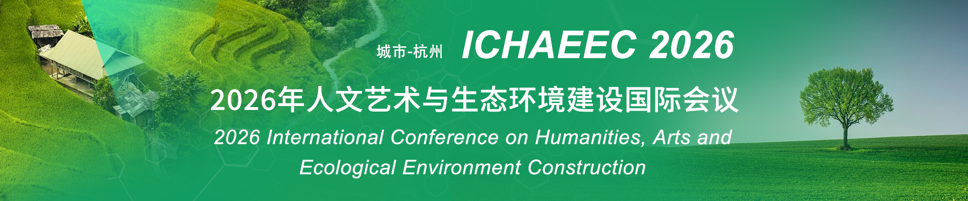 The International Conference on Humanities, Arts and Ecological Environment Construction (ICHAEEC 2026) is scheduled to be held in Hangzhou, China in 2026. The conference will focus on discussions in the fields of humanities, arts, and ecological environment construction, aiming to provide an international cooperation and exchange platform for experts, scholars, and business development personnel in related research directions to share research results, discuss existing problems and challenges, and explore cutting-edge technologies. The conference cordially invites experts, scholars, business professionals, and other relevant personnel from domestic and foreign universities and research institutions to attend and exchange ideas.