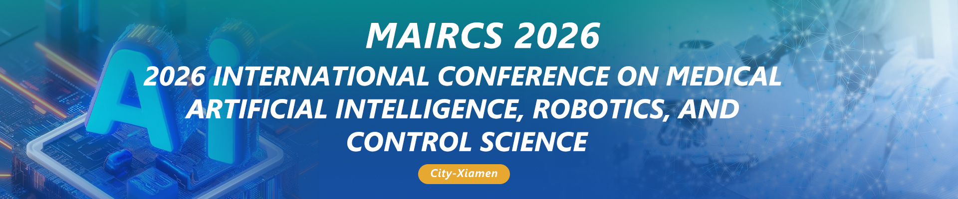 The 2026 International Conference on Medical Artificial Intelligence, Robotics and Control Science (MAIRCS 2026) is scheduled to be held in Xiamen, China. Intended to provide a platform for researchers, technicians, and related personnel engaged in medical artificial intelligence, robotics, and control science to share scientific research achievements and cutting-edge technologies, understand academic development trends, broaden research ideas, strengthen academic research and exploration, and promote industrial cooperation of academic achievements. The conference cordially invites experts, scholars, business professionals, and other relevant personnel from domestic and foreign universities and research institutions to attend and exchange ideas.