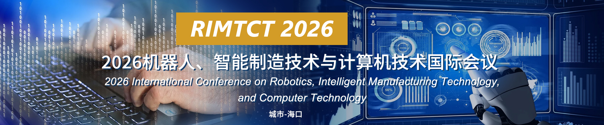 The International Conference on Robotics, Intelligent Manufacturing Technology, and Computer Technology (RIMTCT 2026) is scheduled to be held in Haikou, China in 2026. Aiming to provide a platform for researchers, technicians, and related personnel engaged in robotics, intelligent manufacturing technology, and computer technology to share scientific research achievements and cutting-edge technologies, understand academic development trends, broaden research ideas, strengthen academic research and exploration, and promote industrial cooperation of academic achievements. The conference cordially invites experts, scholars, business professionals, and other relevant personnel from domestic and foreign universities and research institutions to attend and exchange ideas.