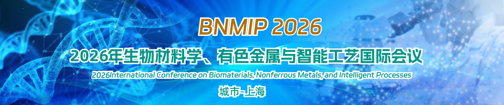 The International Conference on Biomaterials, Nonferrous Metals and Intelligent Processes (BNMIP 2026) is scheduled to be held in Shanghai, China in 2026. The conference will focus on discussions in the fields of biomaterials, non-ferrous metals, and intelligent processes. The conference cordially invites experts, scholars, business professionals, and other relevant personnel from domestic and foreign universities and research institutions to attend and exchange ideas. To provide an international platform for experts, professors, scholars, engineers, etc. from domestic and foreign universities, scientific research institutes, enterprises and institutions to share professional experience, expand professional networks, exchange new ideas face-to-face, and showcase research results, explore key challenges and research directions faced by the development of this field, in order to promote the development and application of theory and technology in universities and enterprises. Experts and scholars in this field are welcome to submit papers and attend the conference!